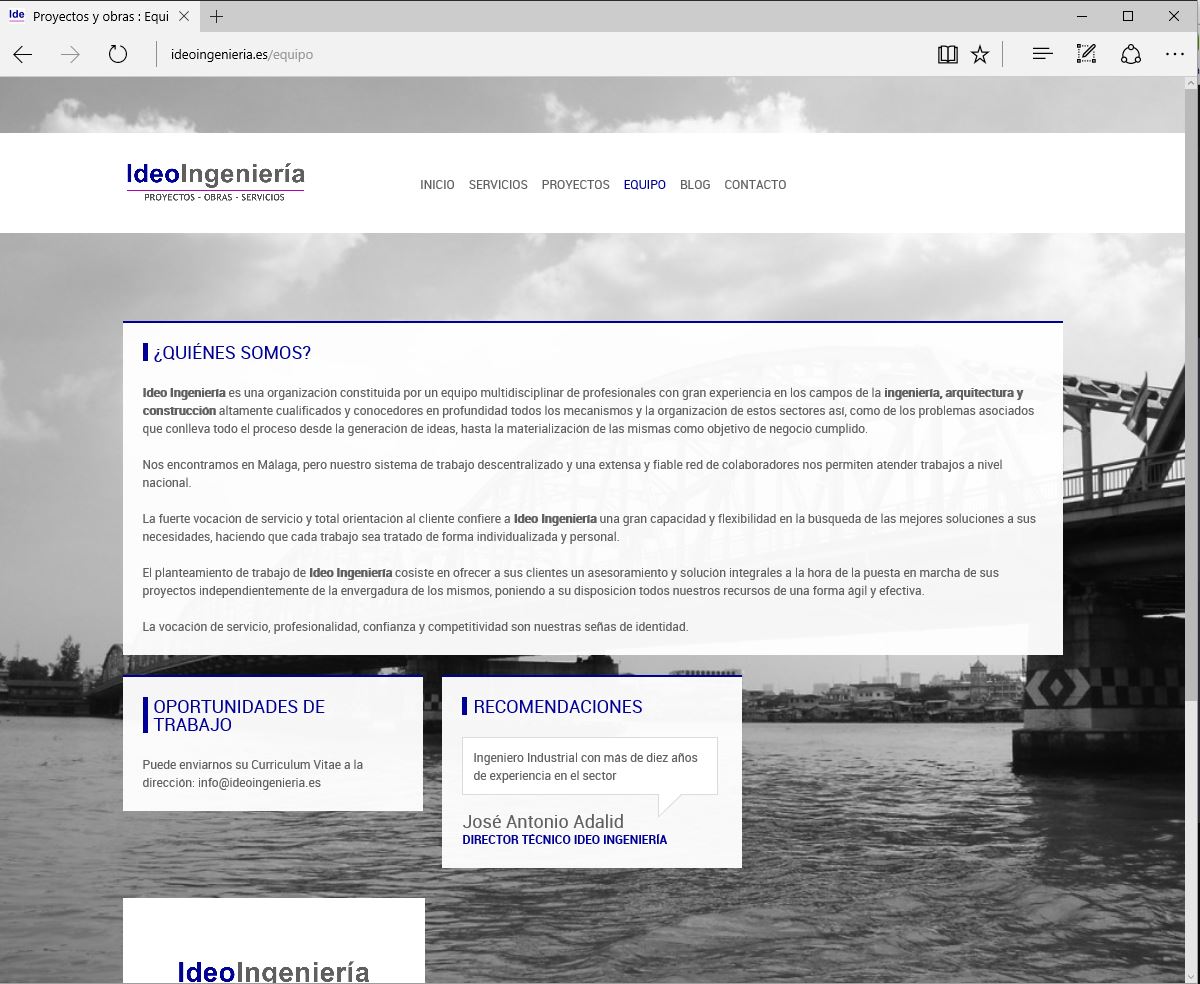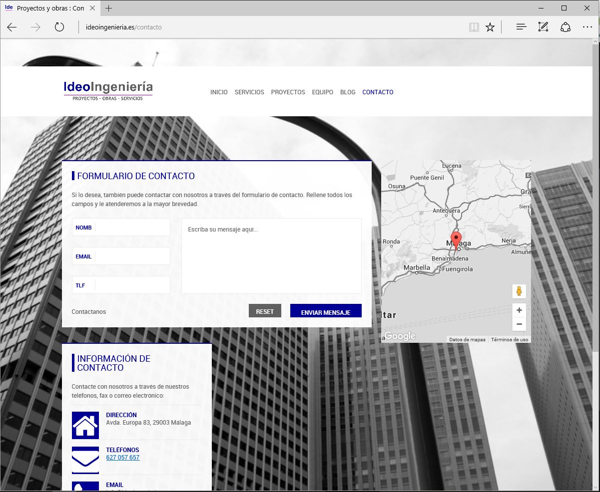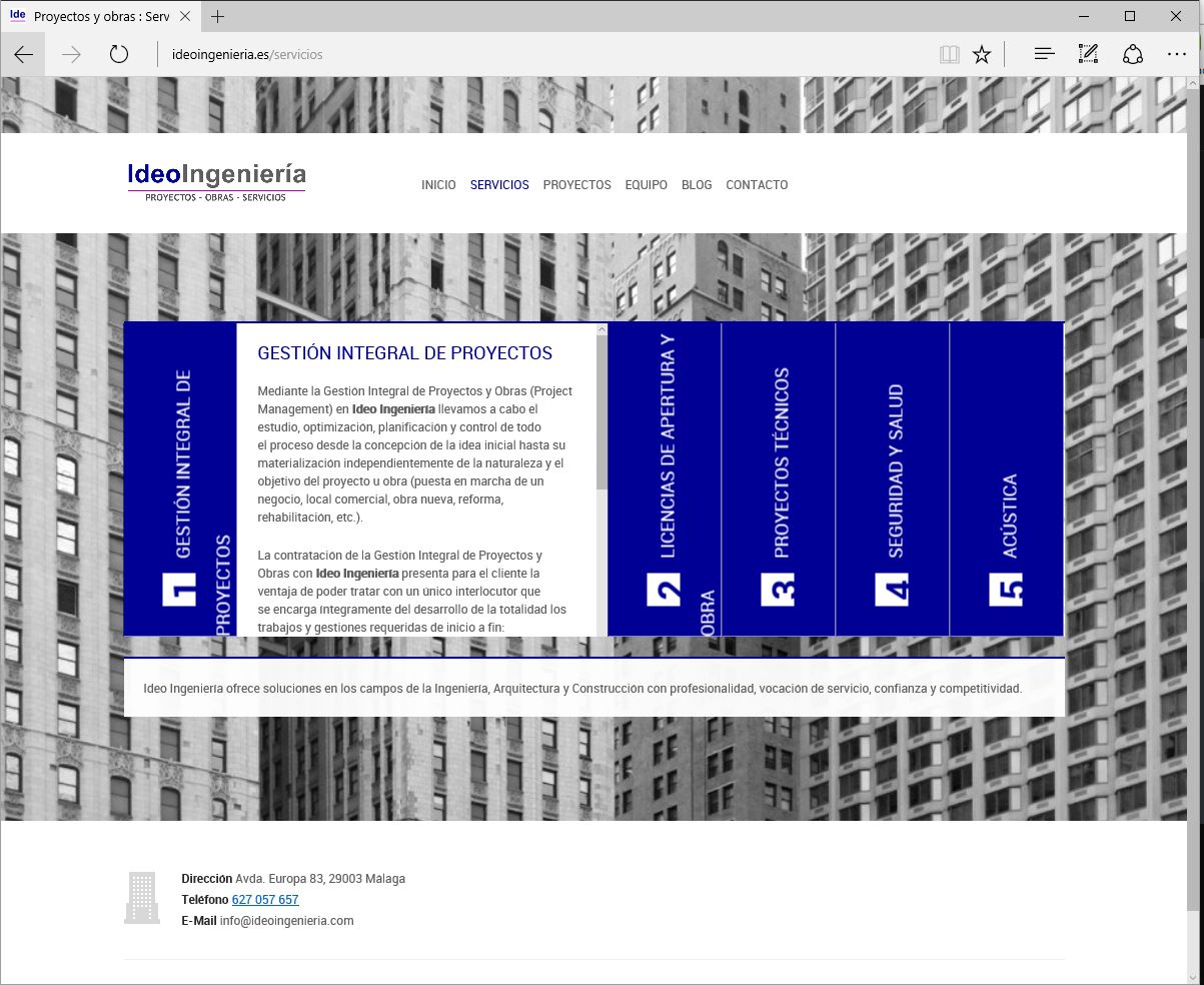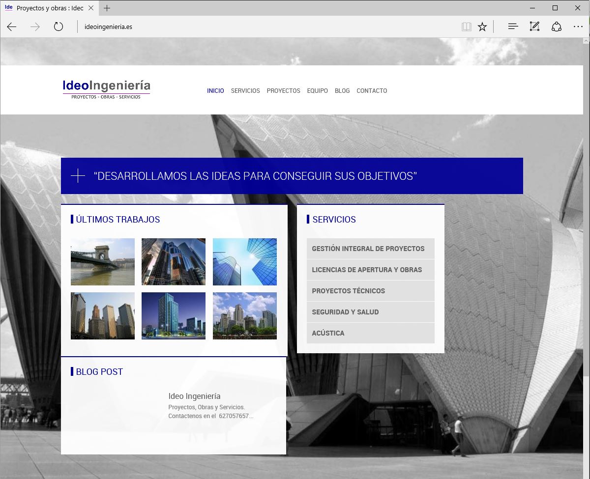 Desarrollo en Wordpress de la web corporativa de la empresa IdeoIngeniería. Se impartió curso de MK Online y asistió durando dos año al mantenimiento de la web y campaña Mk Online.